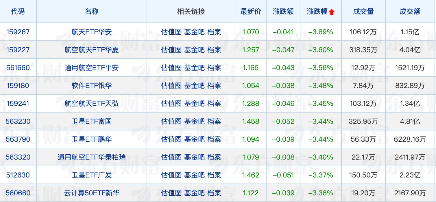下跌方面,航空航天相关ETF跌超3%。
