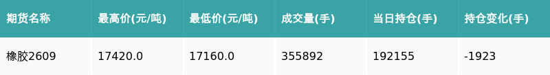南财智讯4月28日电,盘后期货数据显示,上海期货交易所的橡胶主力合约收涨1.55%,收盘报17395.0元/吨,日内资金流出100.61万元。其他相关指标见下表: