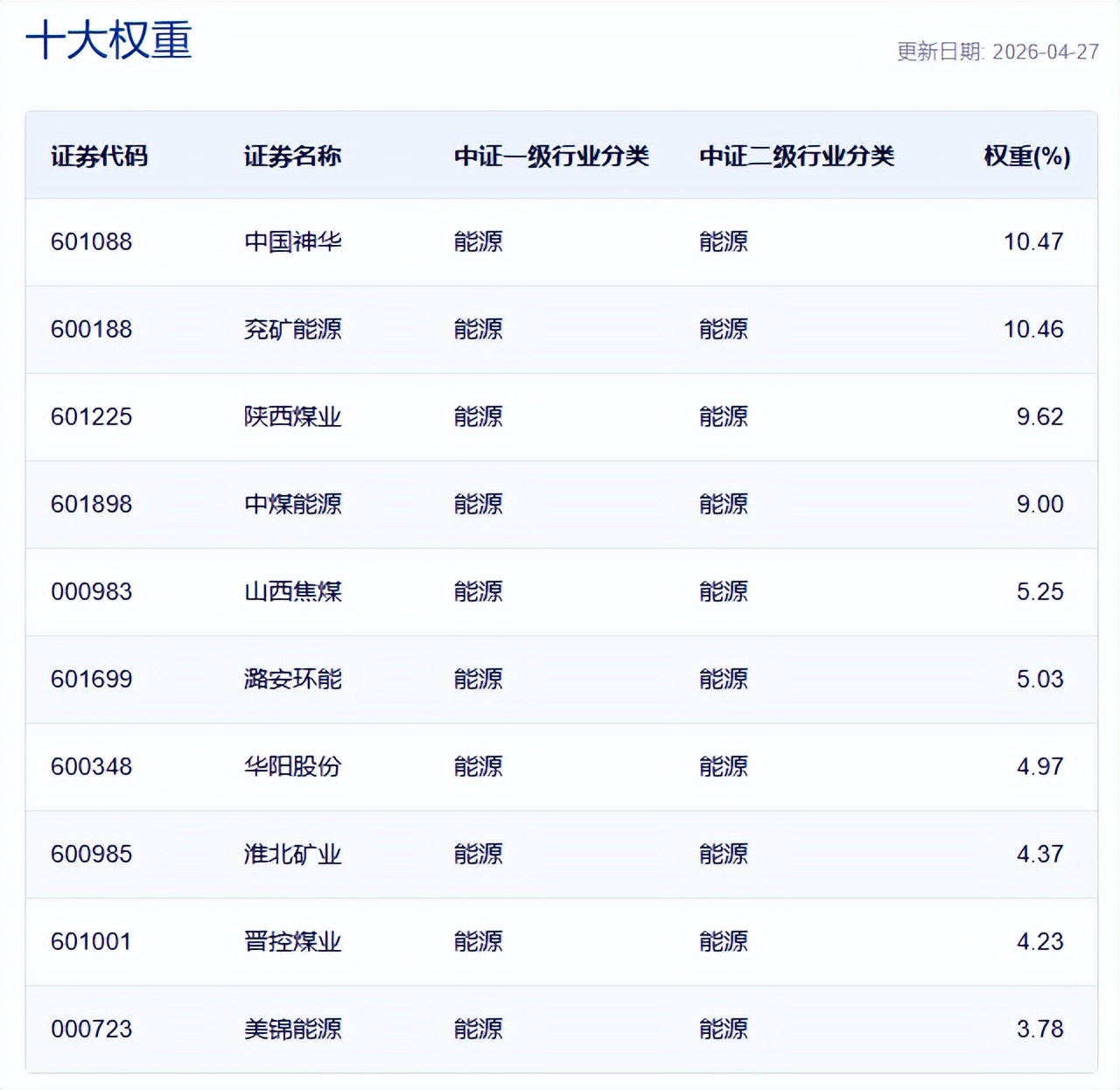 煤炭ETF(515220)一篮子覆盖产业链核心资产。该ETF跟踪中证煤炭指数,涵盖中国神华、中煤能源、陕西煤业等高长协锁定稳健盈利的龙头,也包括兖矿能源、晋控煤业等更具弹性的标的,兼顾防御属性与旺季弹性。