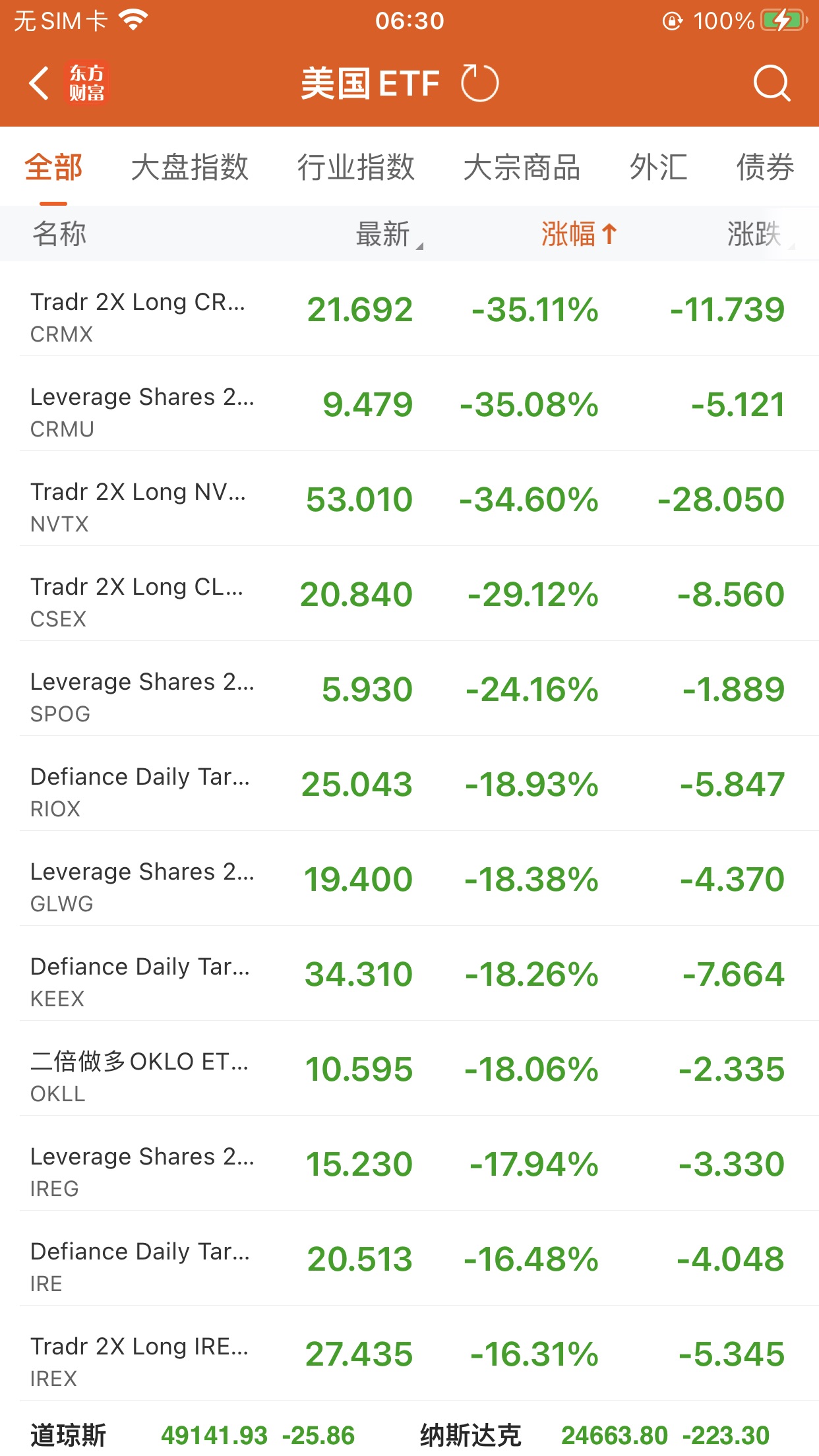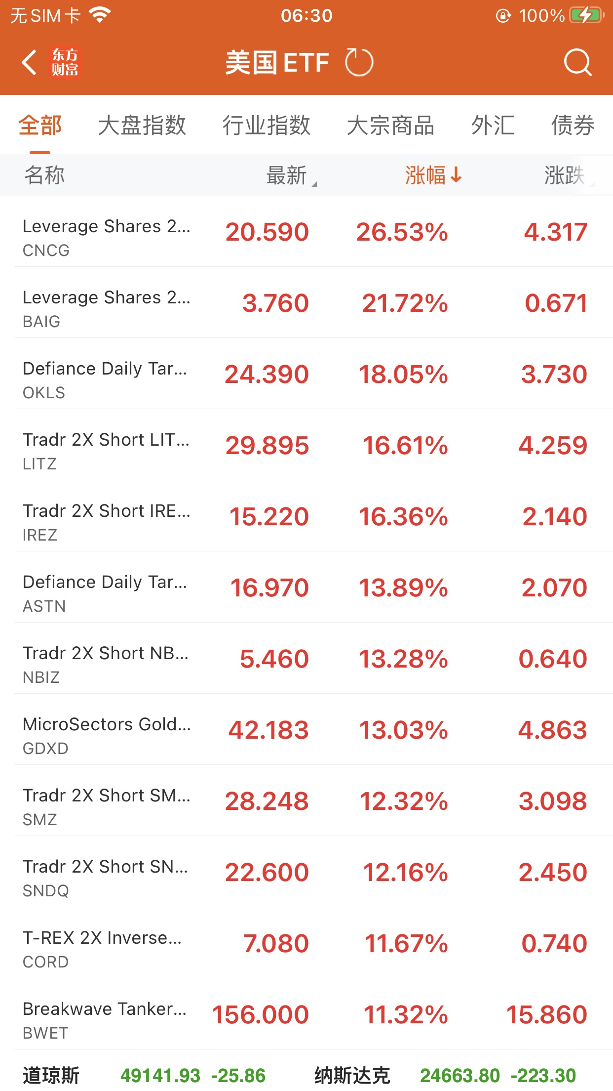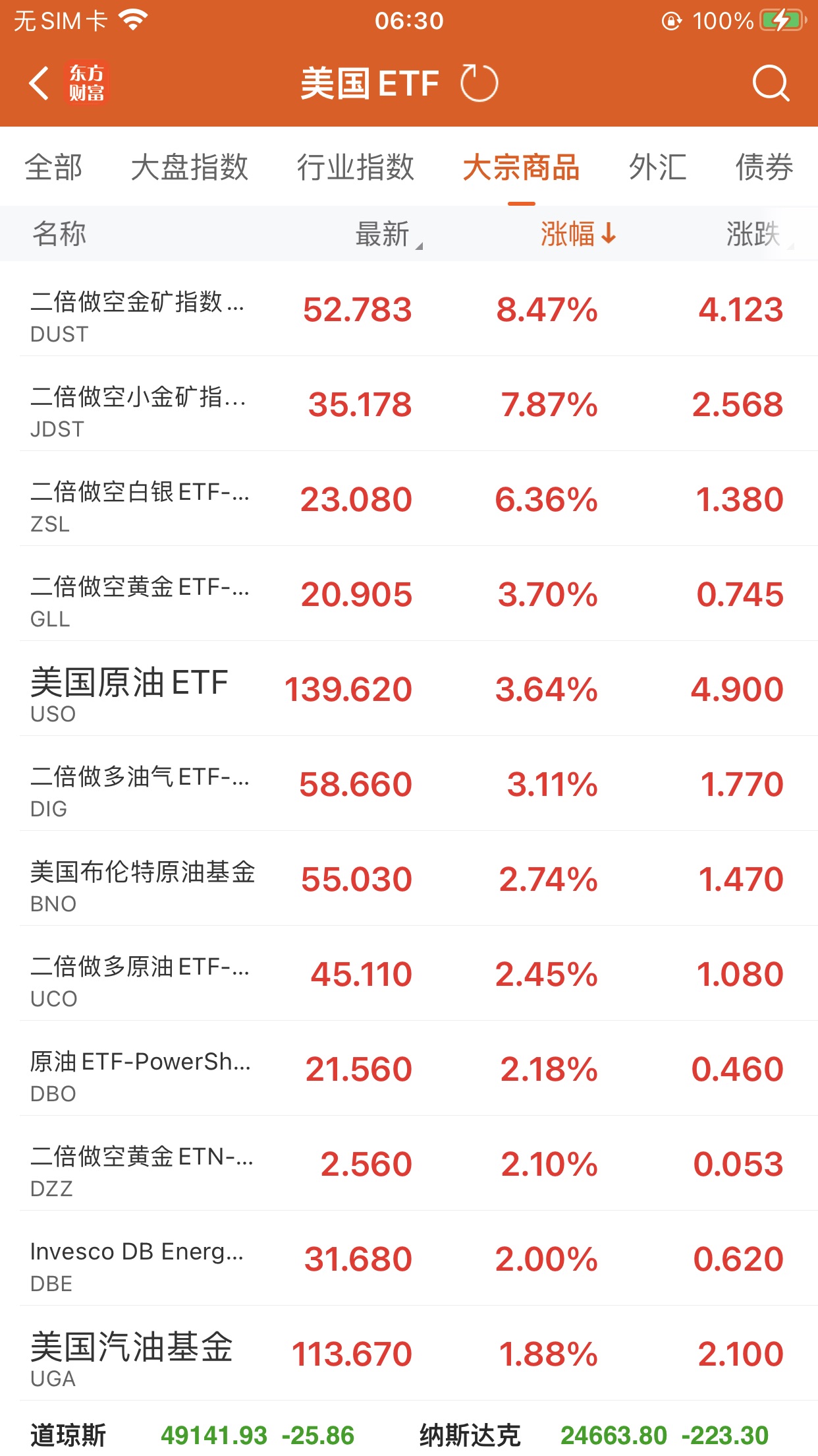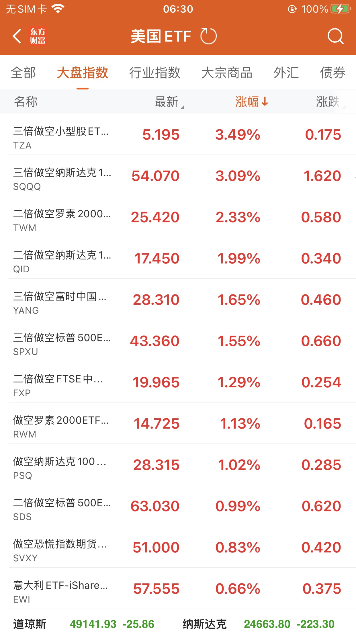 美股ETF追踪 | 美股三大指数全线下跌 三倍做空纳斯达克100ETF涨超3%