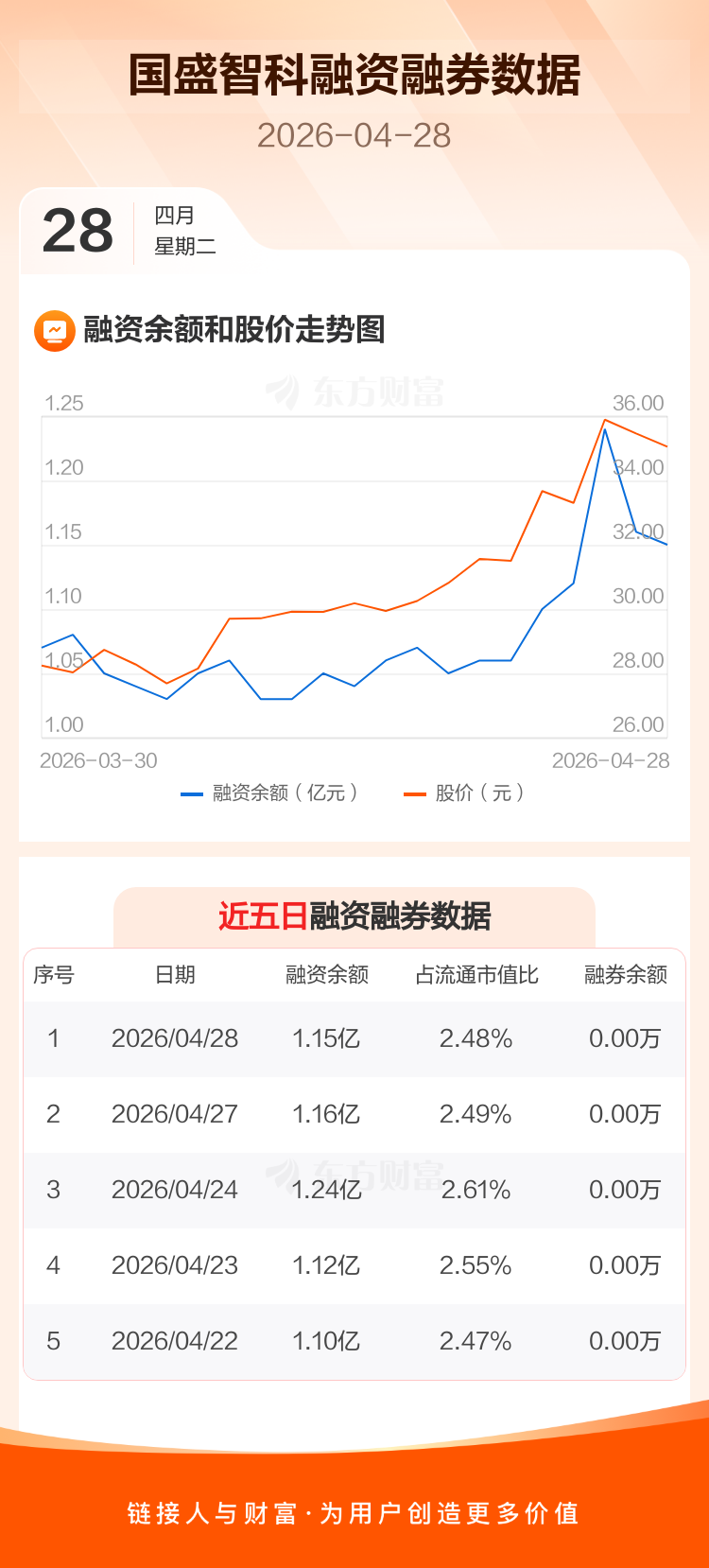 交易所最新数据显示,国盛智科于2026年4月28日获融资买入1116.47万元,融资偿还1300.87万元,当日融资净偿还184.4万元。目前,该股融资余额1.15亿,占流通市值比例为2.48%。