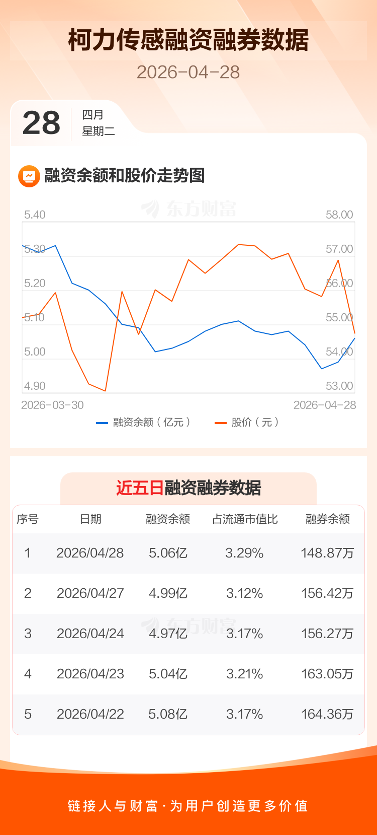 交易所最新数据显示,柯力传感于2026年4月28日获融资买入3103.14万元,融资偿还2363.16万元,当日融资净买入739.97万元。目前,该股融资余额5.06亿,占流通市值比例为3.29%。