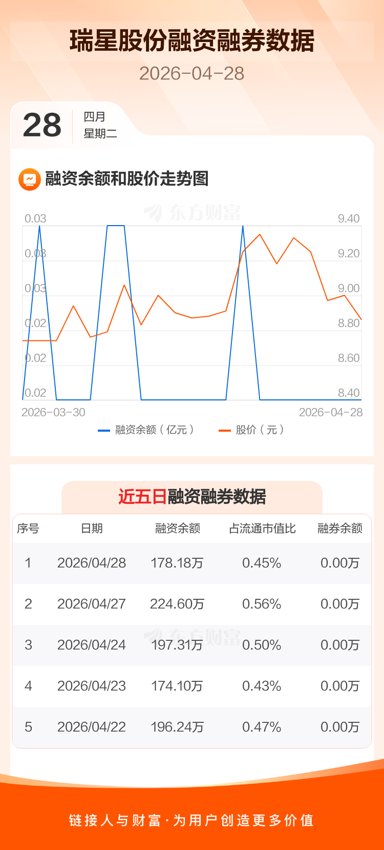 交易所最新数据显示,瑞星股份于2026年4月28日获融资买入38.63万元,融资偿还85.04万元,当日融资净偿还46.41万元。目前,该股融资余额178.18万,占流通市值比例为0.45%。