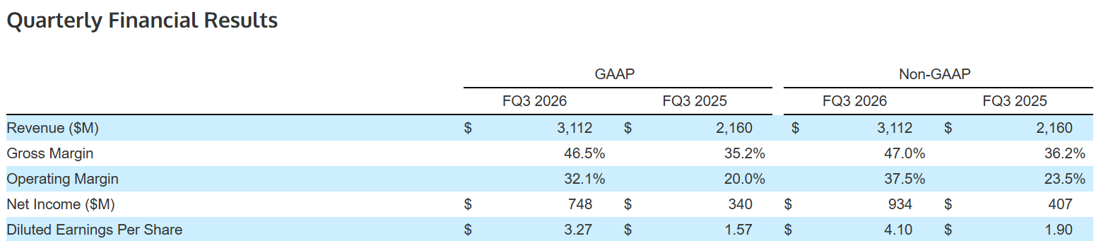 财报显示,公司不仅上季度营收强劲,而且对前景利润预期非常乐观,表明企业在人工智能设备上的支出将保持强劲势头。公司股价盘后飙升16%。