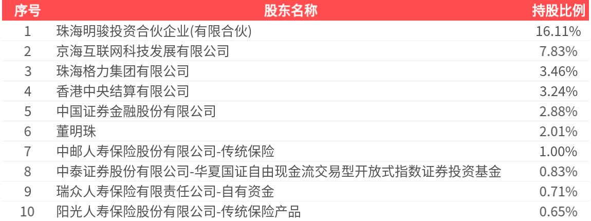 公司股东户数为60.29万户,前十大股东持股数量为21.70亿股,占总股本比例为38.73%,前十大股东持股情况如下: