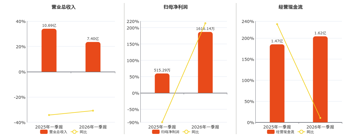 公司营业总收入为7.40亿元,在已披露的同业公司中排名第23。归母净利润为1616.14万元,较去年同报告期归母净利润增加1100.86万元,同比较去年同期上涨213.64%。经营活动现金净流入为1.62亿元,在已披露的同业公司中排名第11,较去年同报告期经营活动现金净流入增加1512.72万元,实现2年连续上涨,同比较去年同期上涨10.27%。