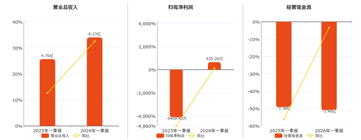 公司营业总收入为6.23亿元。归母净利润为535.26万元,在已披露的同业公司中排名第166。经营活动现金净流入为-1.40亿元,在已披露的同业公司中排名第190,较去年同报告期经营活动现金净流入减少464.02万元。