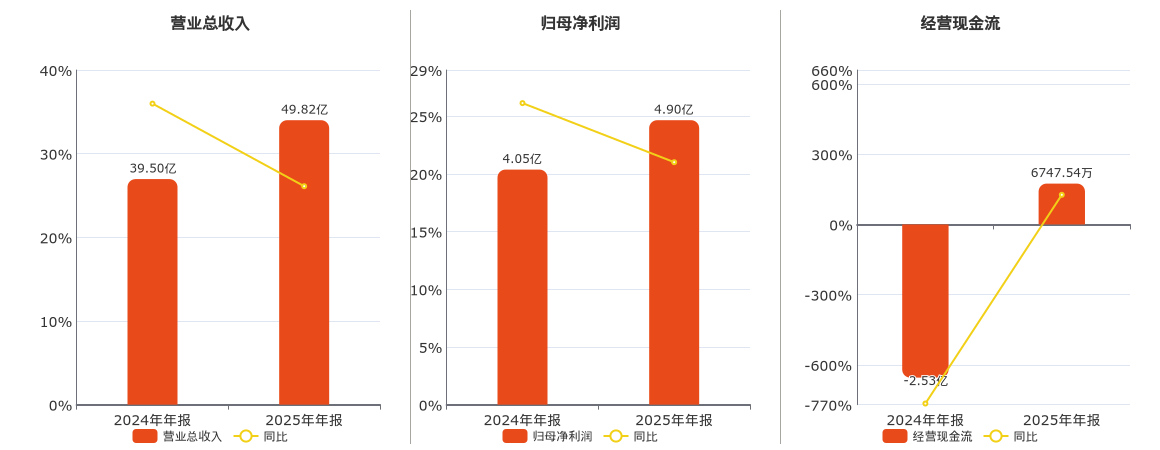公司营业总收入为49.82亿元。归母净利润为4.90亿元。经营活动现金净流入为6747.54万元,在已披露的同业公司中排名第198。