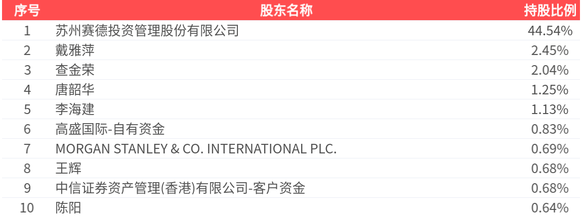 公司股东户数为1.51万户,前十大股东持股数量为9556.42万股,占总股本比例为54.93%,前十大股东持股情况如下: