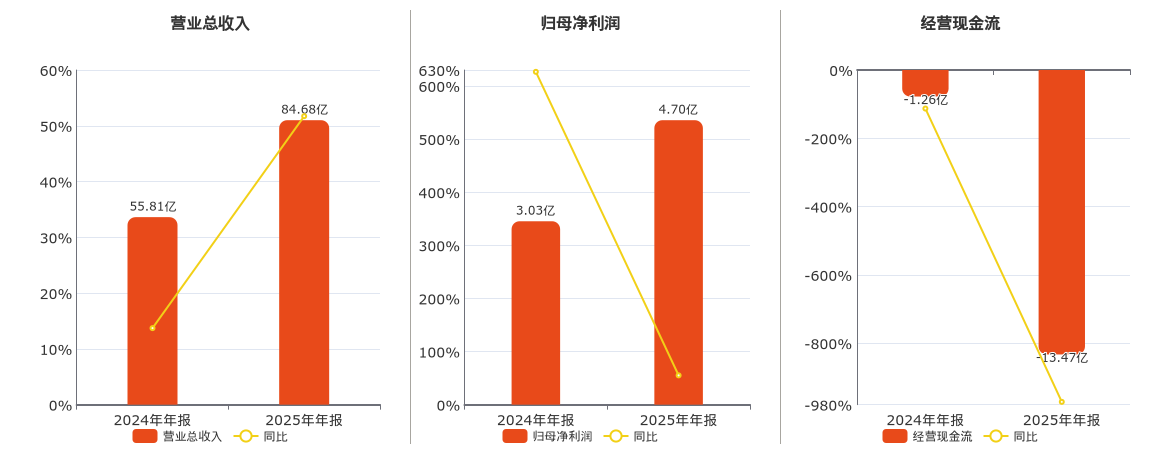 公司营业总收入为84.68亿元。归母净利润为4.70亿元。经营活动现金净流入为-13.47亿元,在已披露的同业公司中排名第98,较去年同报告期经营活动现金净流入减少12.22亿元。