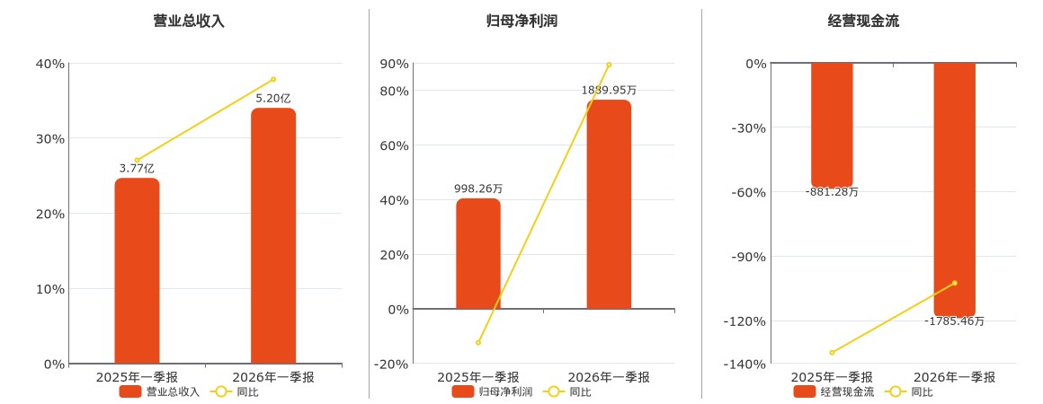 公司营业总收入为5.20亿元,在已披露的同业公司中排名第32。归母净利润为1889.95万元,在已披露的同业公司中排名第29。经营活动现金净流入为-1785.46万元,在已披露的同业公司中排名第37,较去年同报告期经营活动现金净流入减少904.17万元。