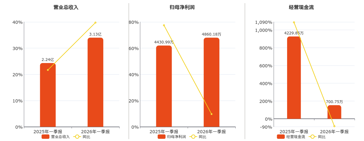 公司营业总收入为3.13亿元,在已披露的同业公司中排名第62。归母净利润为4860.18万元,在已披露的同业公司中排名第51。经营活动现金净流入为700.75万元,在已披露的同业公司中排名第57,较去年同报告期经营活动现金净流入减少3529.10万元,同比较去年同期下降83.43%。