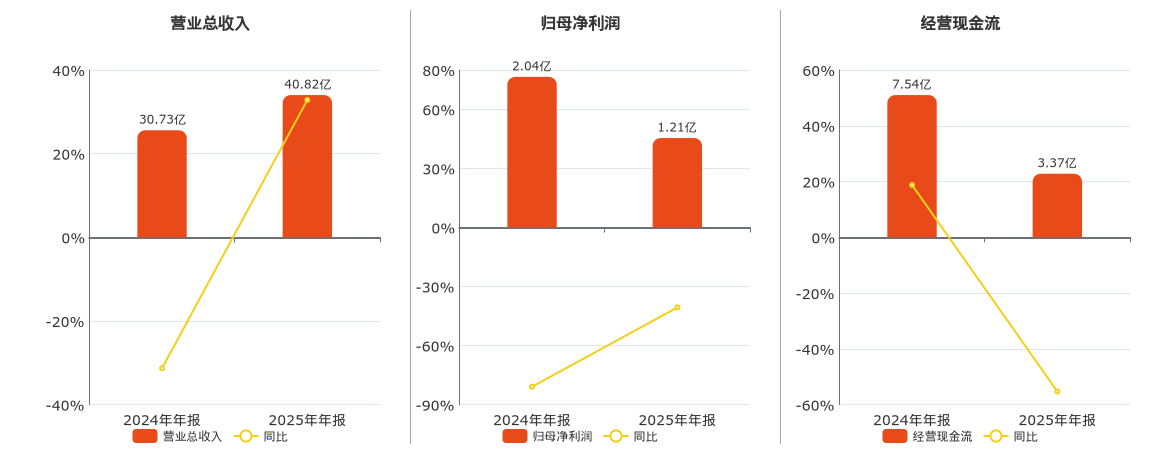 艾罗能源(688717.SH)2025年净利润为1.21亿元、较去年同期下降40.61%
