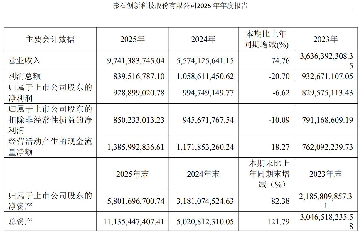 4月28日晚间,影石创新发布2025年年度报告及2026年第一季度报告。2025年,公司实现营收约97.41亿元,同比增长74.76%;归母净利润约9.29亿元,同比下降6.62%;今年一季度,公司实现营收约24.81亿元,同比增长83.11%;归母净利润约8462.02万元,同比下降52.02%。
