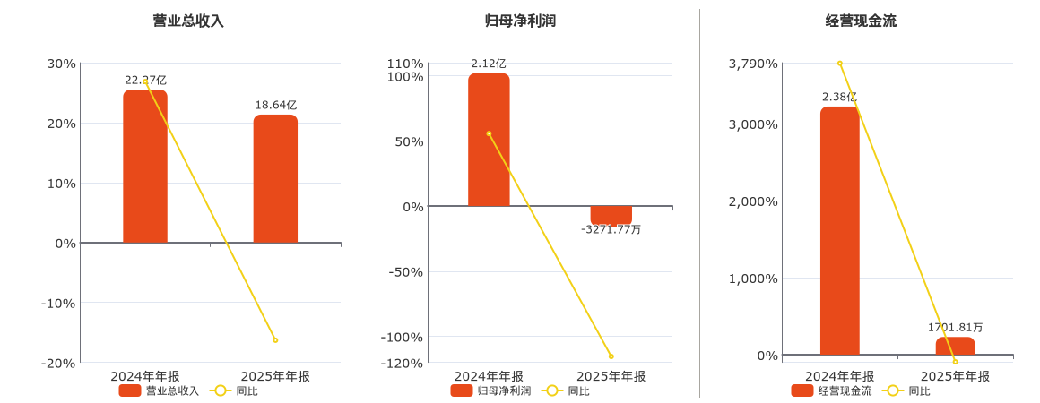 天键股份(301383.SZ)2025年净利润为-3271.77万元,由盈转亏
