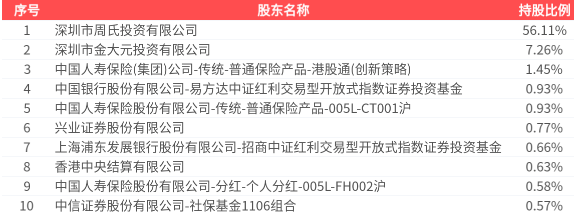 公司股东户数为4.10万户,前十大股东持股数量为7.59亿股,占总股本比例为69.89%,前十大股东持股情况如下: