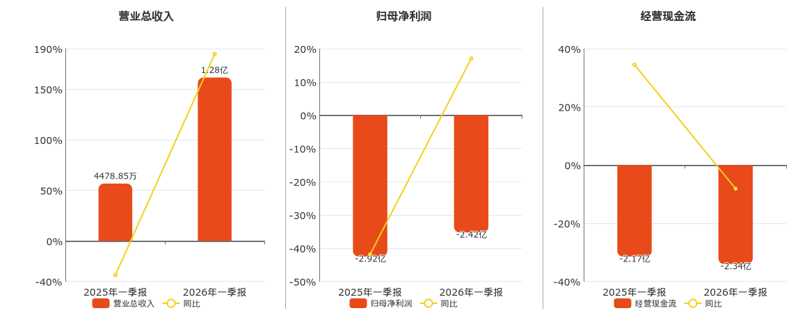 公司营业总收入为1.28亿元,在已披露的同业公司中排名第104。归母净利润为-2.42亿元,在已披露的同业公司中排名第132。经营活动现金净流入为-2.34亿元,在已披露的同业公司中排名第131,较去年同报告期经营活动现金净流入减少1754.64万元。