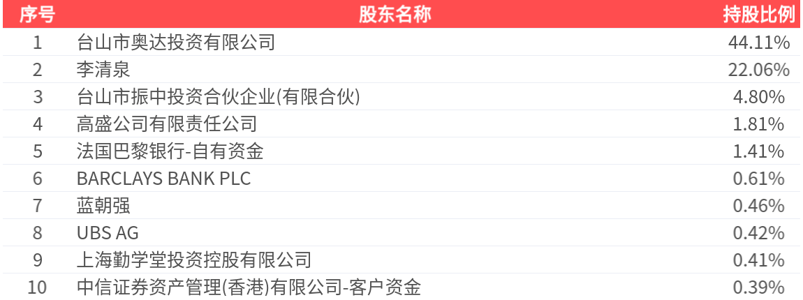 公司股东户数为6042户,前十大股东持股数量为5200.66万股,占总股本比例为76.48%,前十大股东持股情况如下: