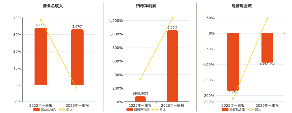 公司营业总收入为5.97亿元,较去年同报告期营业总收入减少1716.95万元,同比较去年同期下降2.79%。归母净利润为2.00亿元。经营活动现金净流入为-6392.75万元,在已披露的同业公司中排名第123。