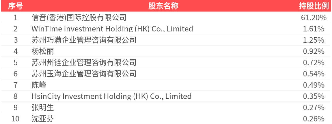 公司股东户数为1.44万户,前十大股东持股数量为1.15亿股,占总股本比例为67.62%,前十大股东持股情况如下: