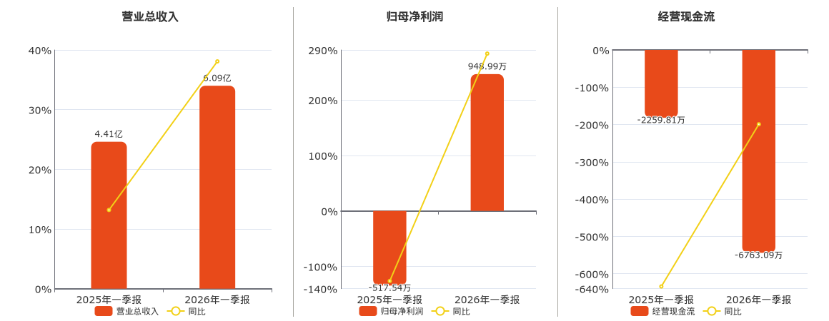 公司营业总收入为6.09亿元。归母净利润为948.99万元,在已披露的同业公司中排名第47。经营活动现金净流入为-6763.09万元,在已披露的同业公司中排名第70,较去年同报告期经营活动现金净流入减少4503.29万元。