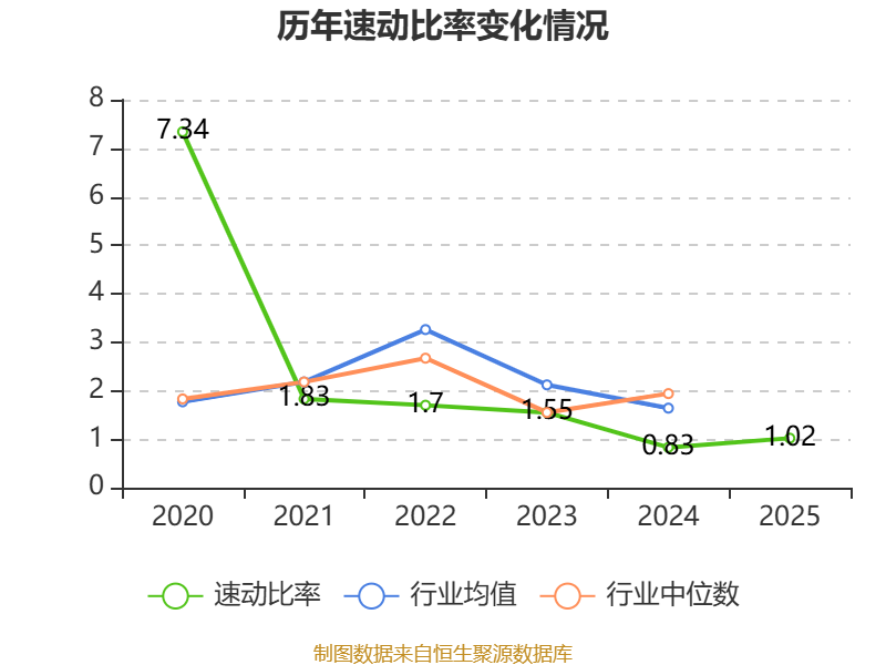 2025年,公司流动比率为1.34,速动比率为1.02。