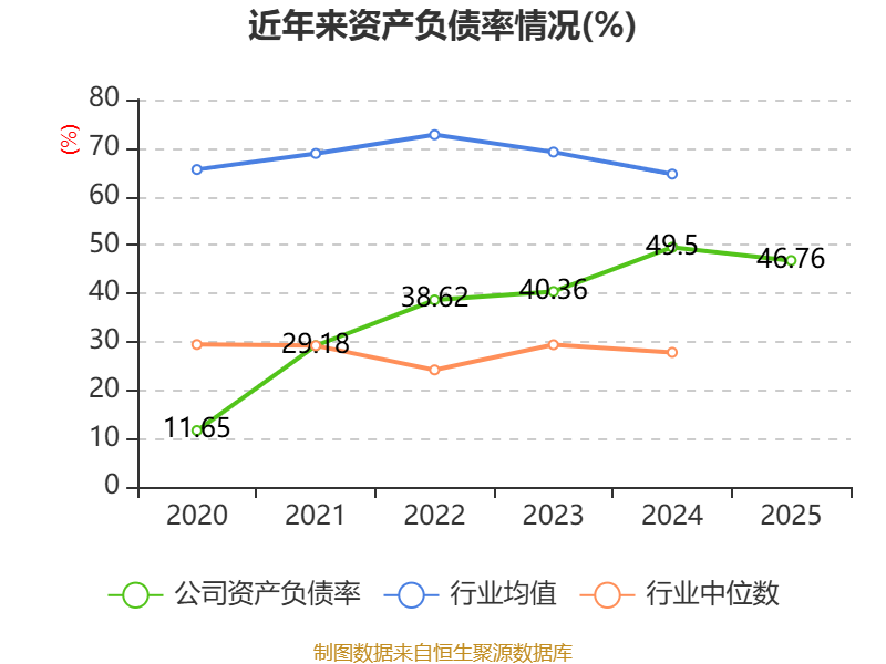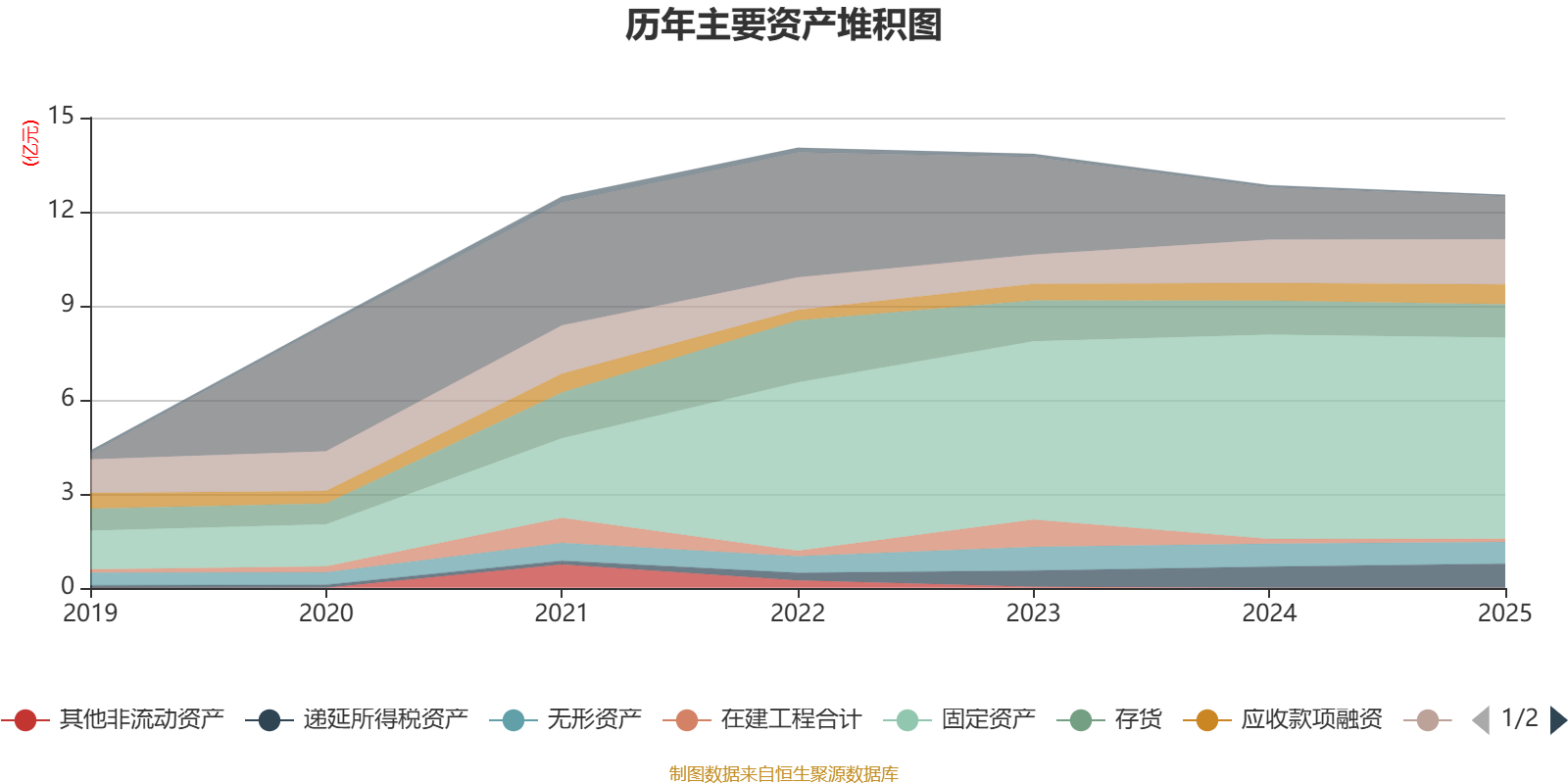 负债重大变化方面,截至2025年末,公司一年内到期的非流动负债较上年末减少43.98%,占公司总资产比重下降5.49个百分点;长期借款较上年末增加40.61%,占公司总资产比重上升4.76个百分点;其他应付款(含利息和股利)较上年末减少90.73%,占公司总资产比重下降3.43个百分点;短期借款较上年末增加59.11%,占公司总资产比重上升2.46个百分点。