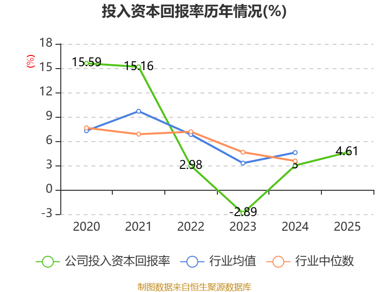 数据显示,2025年公司加权平均净资产收益率为6.56%,较上年同期上升3.17个百分点。公司2025年投入资本回报率为4.61%,较上年同期上升1.61个百分点。