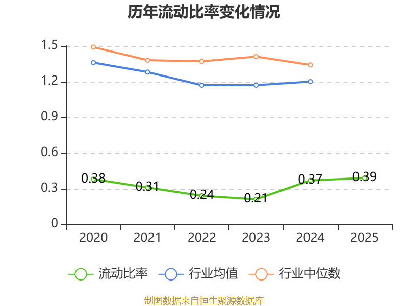 2025年,公司流动比率为0.39,速动比率为0.37。
