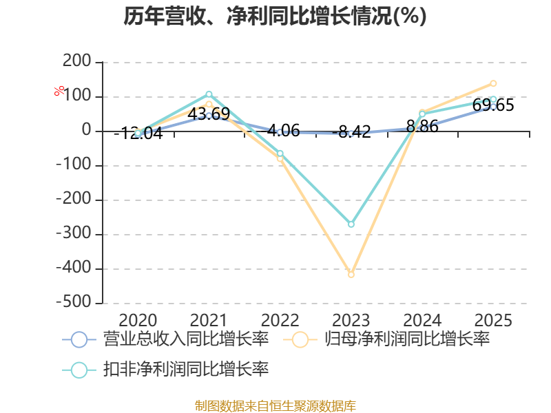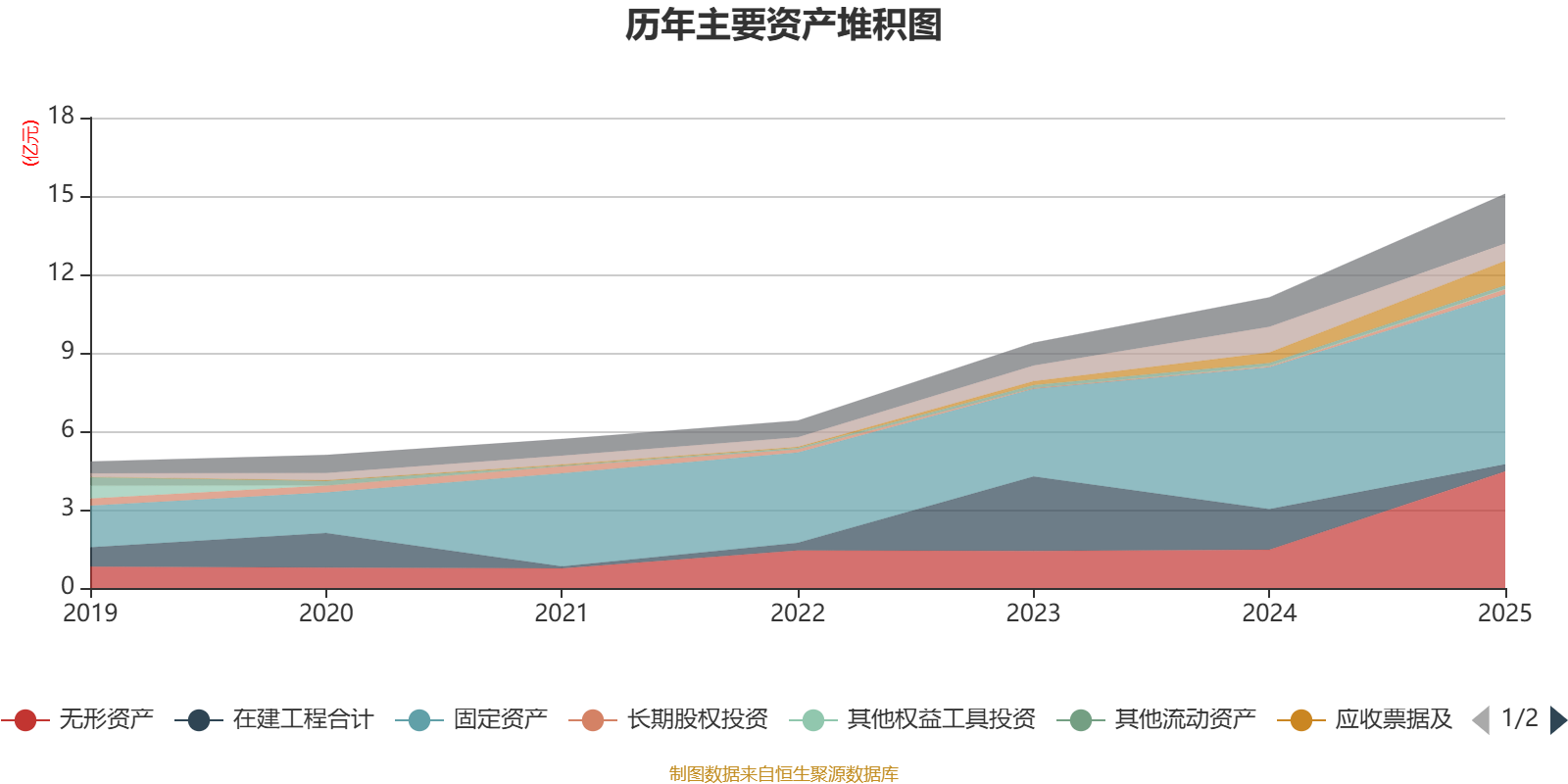 资产重大变化方面,截至2025年末,公司无形资产较上年末增加204.71%,占公司总资产比重上升16.43个百分点;在建工程合计较上年末减少82.65%,占公司总资产比重下降12.17个百分点;固定资产较上年末增加19.78%,占公司总资产比重下降5.7个百分点;货币资金较上年末减少32.06%,占公司总资产比重下降4.4个百分点。