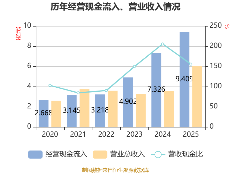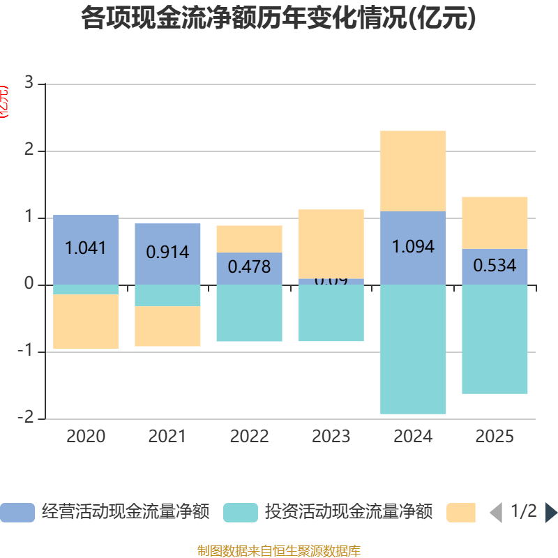 截至2025年,公司经营活动现金流净额为5340.35万元,同比下降51.18%;筹资活动现金流净额7736.41万元,同比减少4283.39万元;投资活动现金流净额-1.63亿元,上年同期为-1.93亿元。