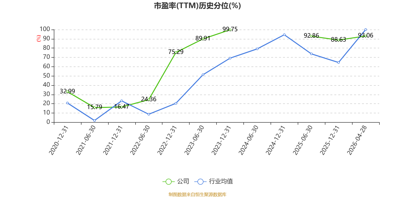 市盈率、市净率为负时,不显示当期分位数,会导致折线图中断。