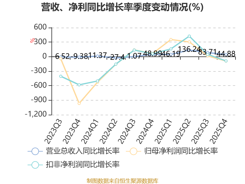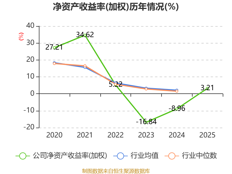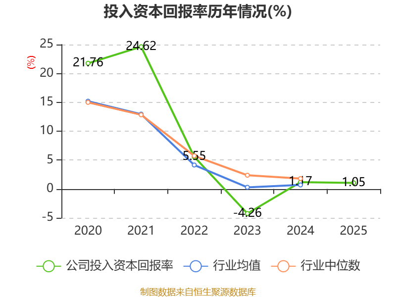 数据显示,2025年公司加权平均净资产收益率为3.21%,较上年同期上升12.17个百分点。公司2025年投入资本回报率为1.05%,较上年同期下降0.12个百分点。