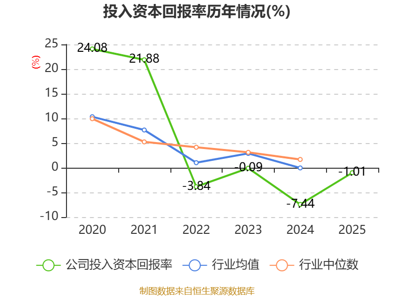 数据显示,2025年公司加权平均净资产收益率为-1.94%,较上年同期上升7.68个百分点。公司2025年投入资本回报率为-1.01%,较上年同期上升6.43个百分点。