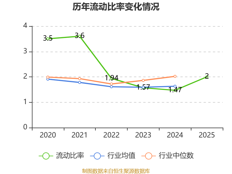 2025年,公司流动比率为2,速动比率为1.77。