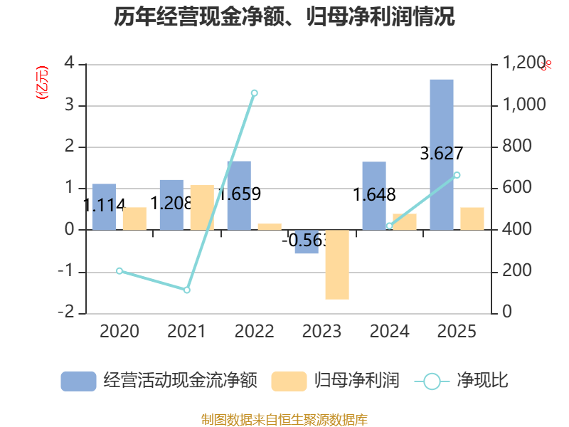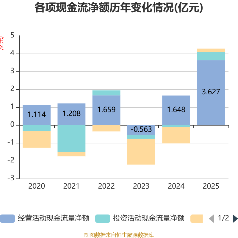 截至2025年,公司经营活动现金流净额为3.63亿元,同比增长120.13%;筹资活动现金流净额1940.97万元,同比增加1.1亿元;投资活动现金流净额4535.26万元,上年同期为-1307.19万元。