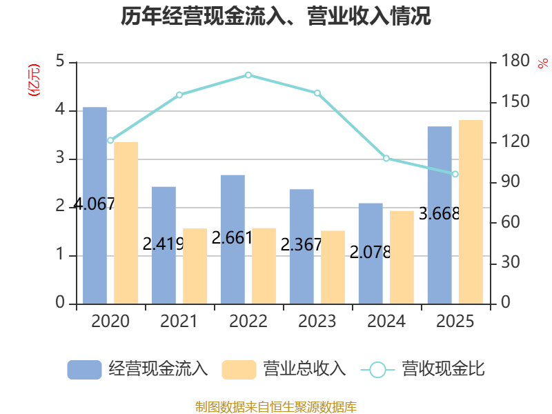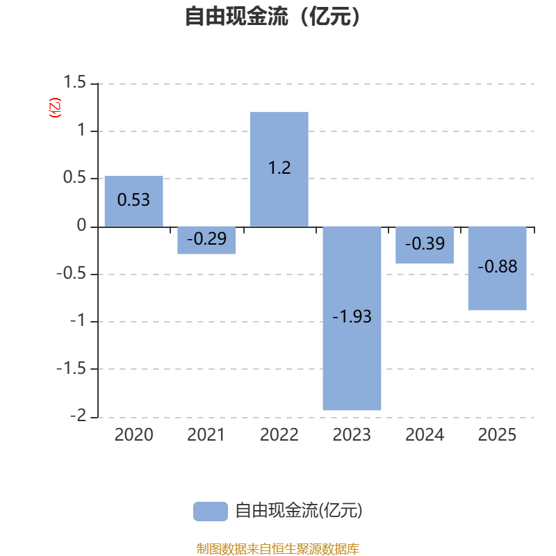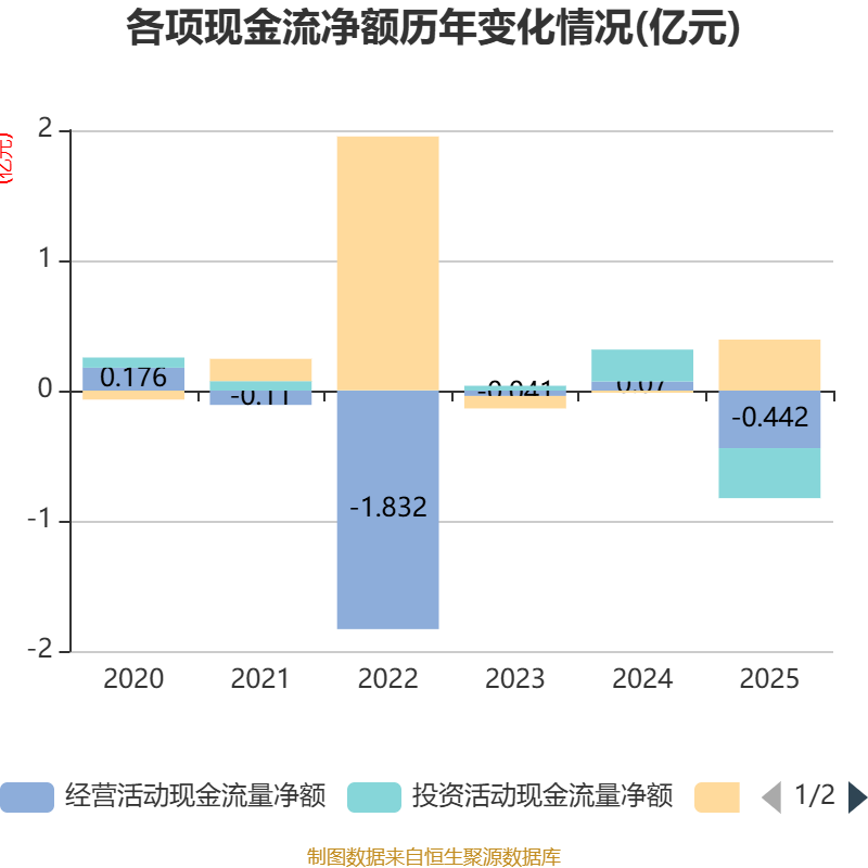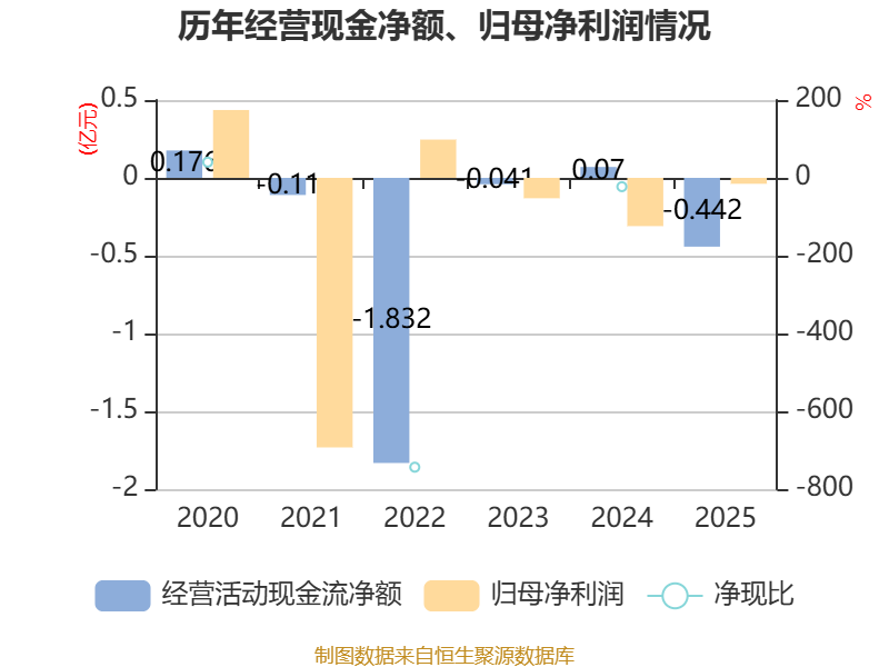 截至2025年,公司经营活动现金流净额为-4421.61万元,同比减少5122.17万元;筹资活动现金流净额3916.86万元,同比增加4086.67万元;投资活动现金流净额-3838.28万元,上年同期为2449.73万元。