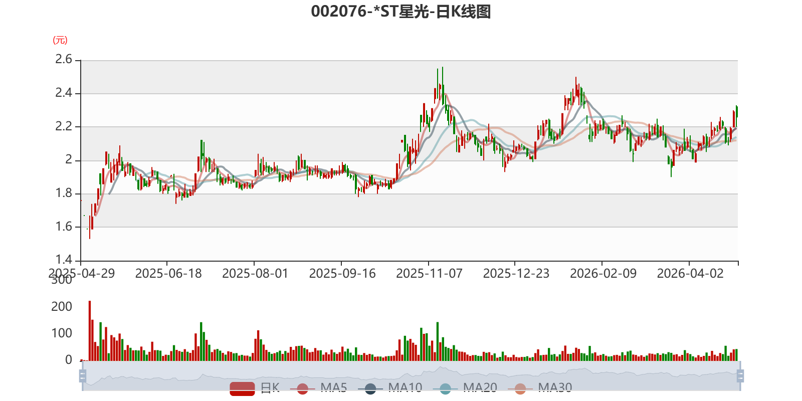 以4月28日收盘价计算,*ST星光目前市盈率(TTM)约为-652.1倍,市净率(LF)约8.05倍,市销率(TTM)约6.6倍。