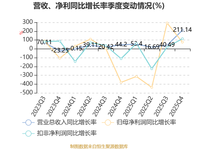 资产重大变化方面,截至2025年末,公司应收票据及应收账款较上年末增加178.88%,占公司总资产比重上升10.09个百分点;货币资金较上年末减少42.89%,占公司总资产比重下降9.6个百分点;投资性房地产较上年末减少3.83%,占公司总资产比重下降7.79个百分点;固定资产较上年末增加131.96%,占公司总资产比重上升4.04个百分点。