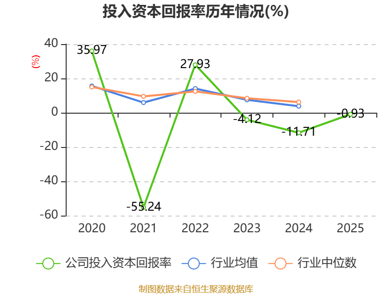数据显示,2025年公司加权平均净资产收益率为-1.32%,较上年同期上升8.85个百分点。公司2025年投入资本回报率为-0.93%,较上年同期上升10.78个百分点。