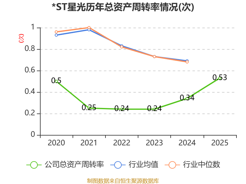 中证智能财讯 *ST星光(002076)4月29日披露2025年年度报告。2025年,公司实现营业总收入3.8亿元,同比增长98.01%;归母净利润亏损384.39万元,上年同期亏损3097.56万元;扣非净利润亏损823.73万元,上年同期亏损2696.9万元;经营活动产生的现金流量净额为-4421.61万元,上年同期为700.56万元;报告期内,*ST星光基本每股收益为-0.0035元,加权平均净资产收益率为-1.32%。