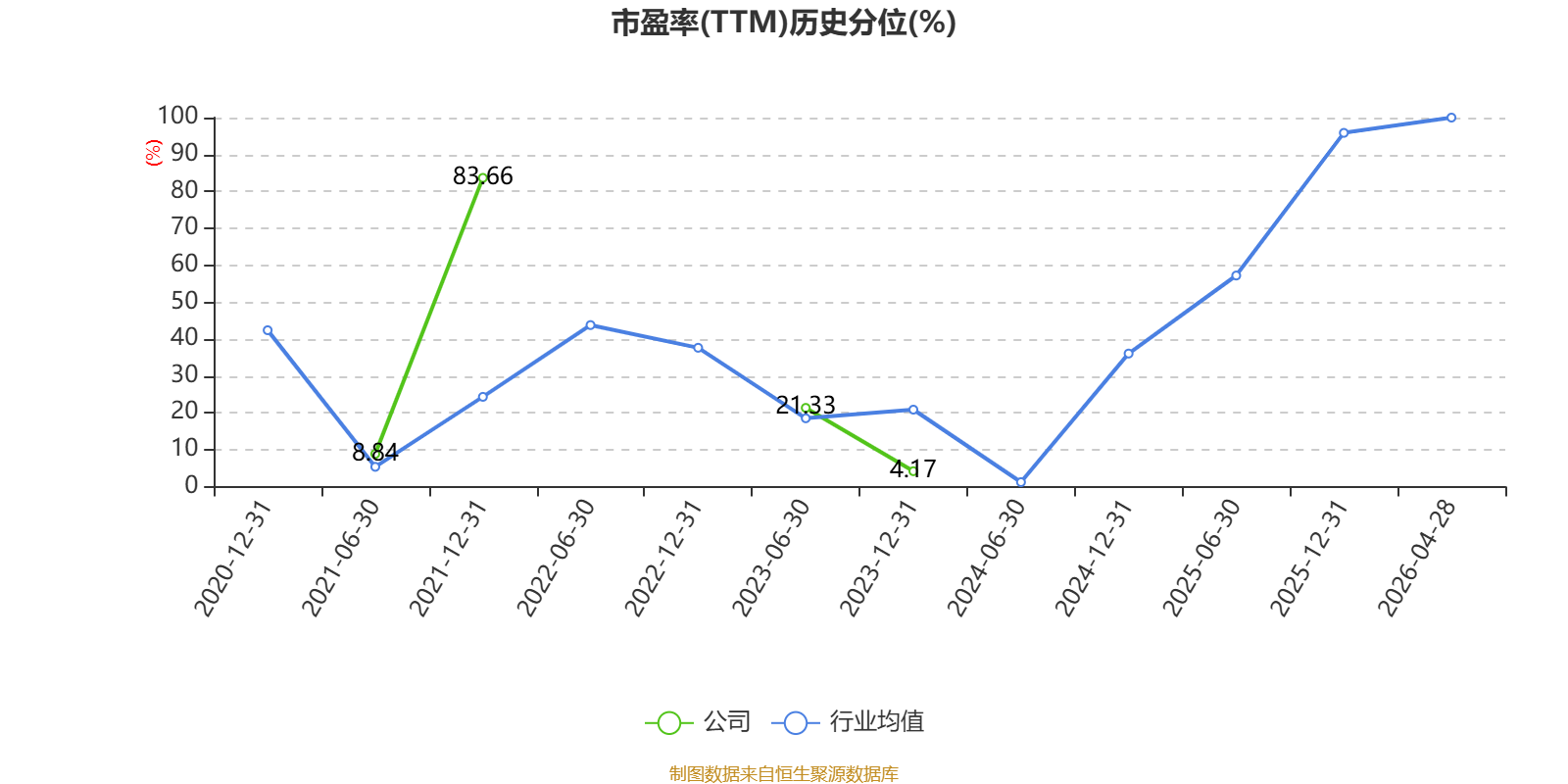 市盈率、市净率为负时,不显示当期分位数,会导致折线图中断。