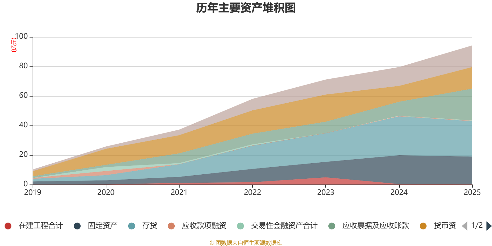 资产重大变化方面,截至2025年末,公司应收票据及应收账款较上年末增加127.42%,占公司总资产比重上升10.95个百分点;存货较上年末减少8.98%,占公司总资产比重下降7.7个百分点;固定资产较上年末减少3.67%,占公司总资产比重下降4.58个百分点;货币资金较上年末增加36.44%,占公司总资产比重上升2.04个百分点。