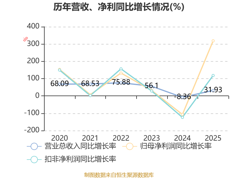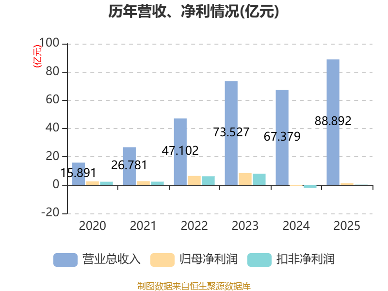 中证智能财讯固德威(688390)4月29日披露2025年年度报告。2025年,公司实现营业总收入88.89亿元,同比增长31.93%;归母净利润1.35亿元,同比扭亏;扣非净利润3490.52万元,同比扭亏;经营活动产生的现金流量净额为6.45亿元,上年同期为-7.93亿元;报告期内,固德威基本每股收益为0.56元,加权平均净资产收益率为4.87%。
