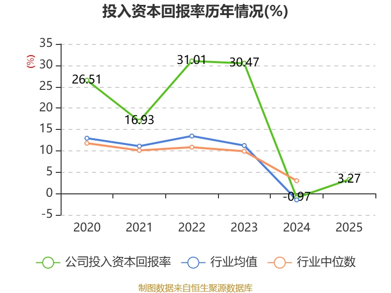 数据显示,2025年公司加权平均净资产收益率为4.87%,较上年同期上升7.03个百分点。公司2025年投入资本回报率为3.27%,较上年同期上升4.24个百分点。