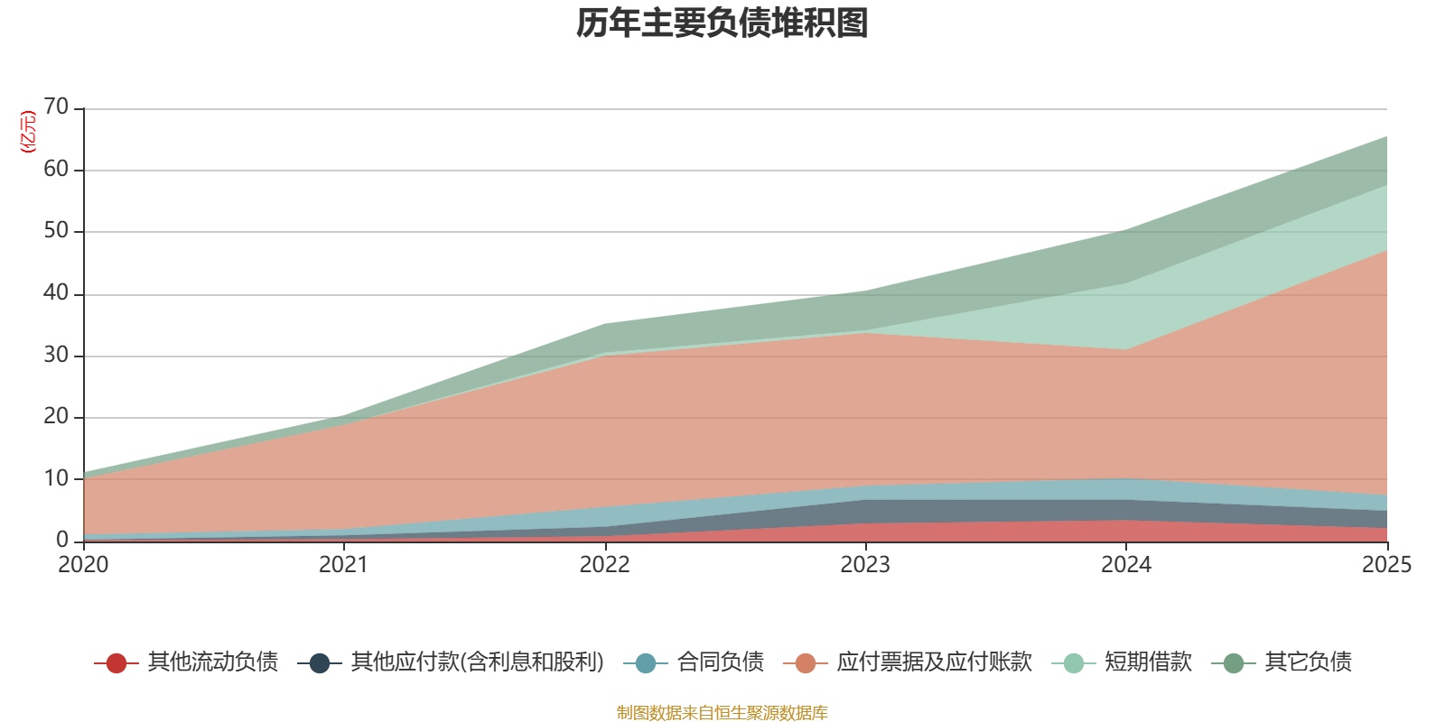 负债重大变化方面,截至2025年末,公司应付票据及应付账款较上年末增加90.31%,占公司总资产比重上升15.83个百分点;短期借款较上年末减少1.62%,占公司总资产比重下降2.29个百分点;其他流动负债较上年末减少36.89%,占公司总资产比重下降2.02个百分点;合同负债较上年末减少26.11%,占公司总资产比重下降1.64个百分点。