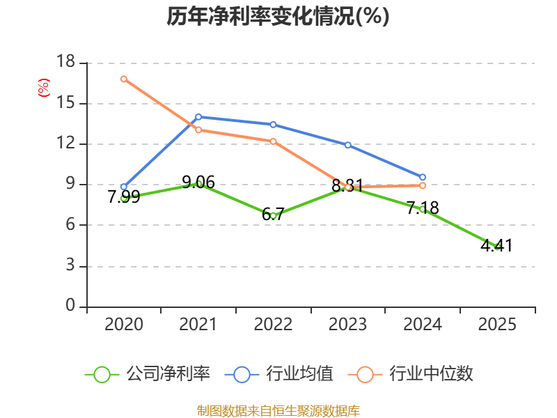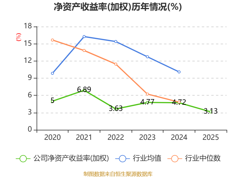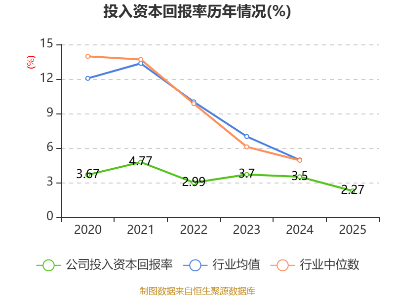 数据显示,2025年公司加权平均净资产收益率为3.13%,较上年同期下降1.59个百分点。公司2025年投入资本回报率为2.27%,较上年同期下降1.23个百分点。