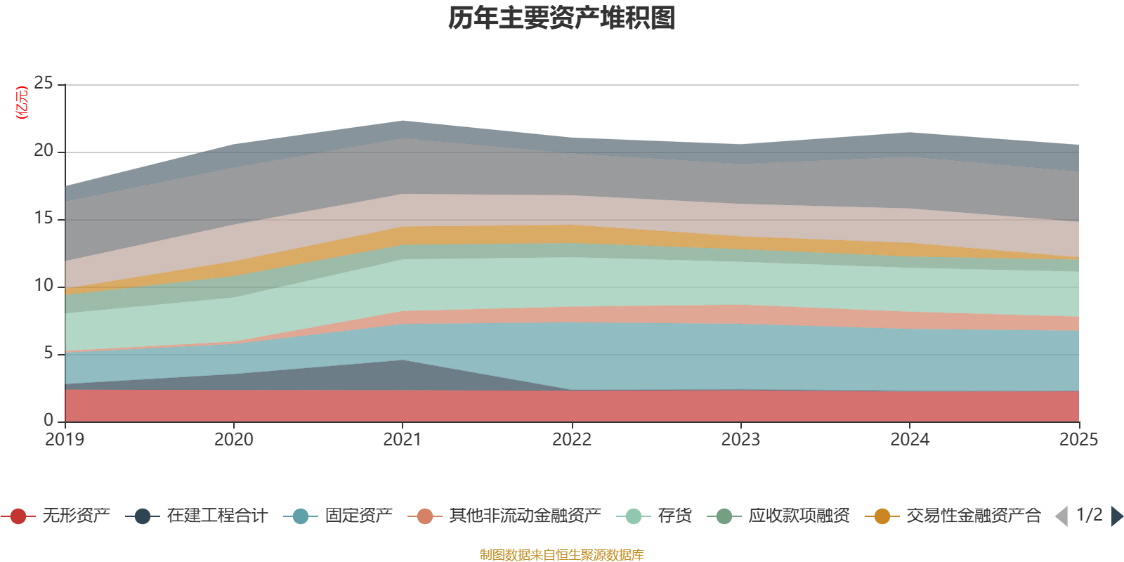资产重大变化方面,截至2025年末,公司交易性金融资产合计较上年末减少83.09%,占公司总资产比重下降3.9个百分点;一年内到期的非流动资产占公司总资产的1.1%,上年末为0;存货较上年末增加2.44%,占公司总资产比重上升1.07个百分点;其他非流动金融资产较上年末减少18.47%,占公司总资产比重下降0.88个百分点。