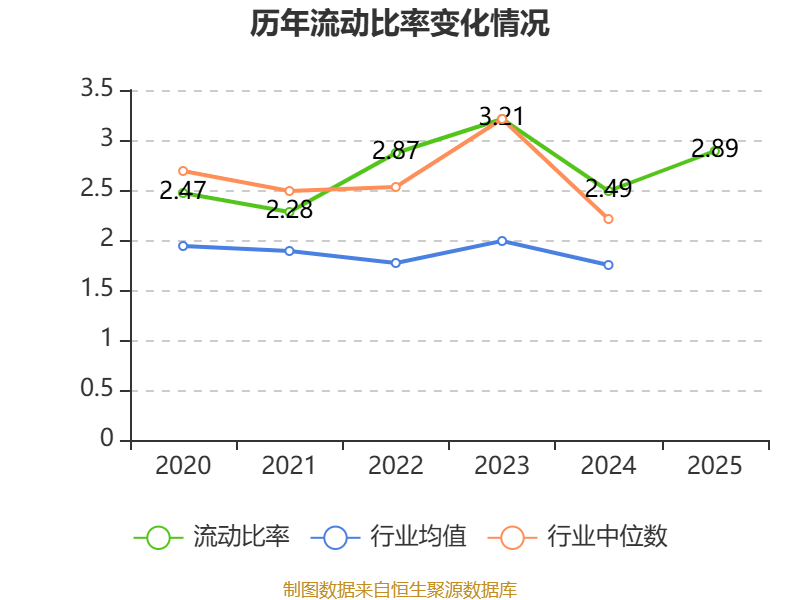 2025年,公司流动比率为2.89,速动比率为2.07。