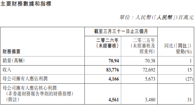 吉利汽车:一季度母公司拥有人应占利润41.66亿元 同比下降27%